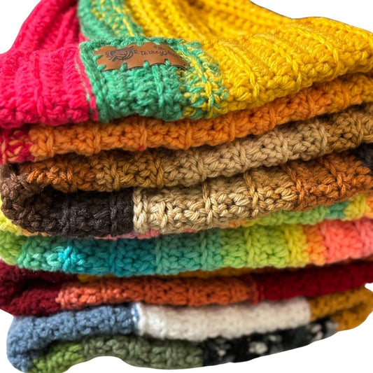 Cozy yet stylish hats, scarfs and cardigans come together to warm the body and soul while preparing you for the colder months ahead. Indulge in the warm and comfort of plush crochet items that are sure to bring you beauty and joy this season.