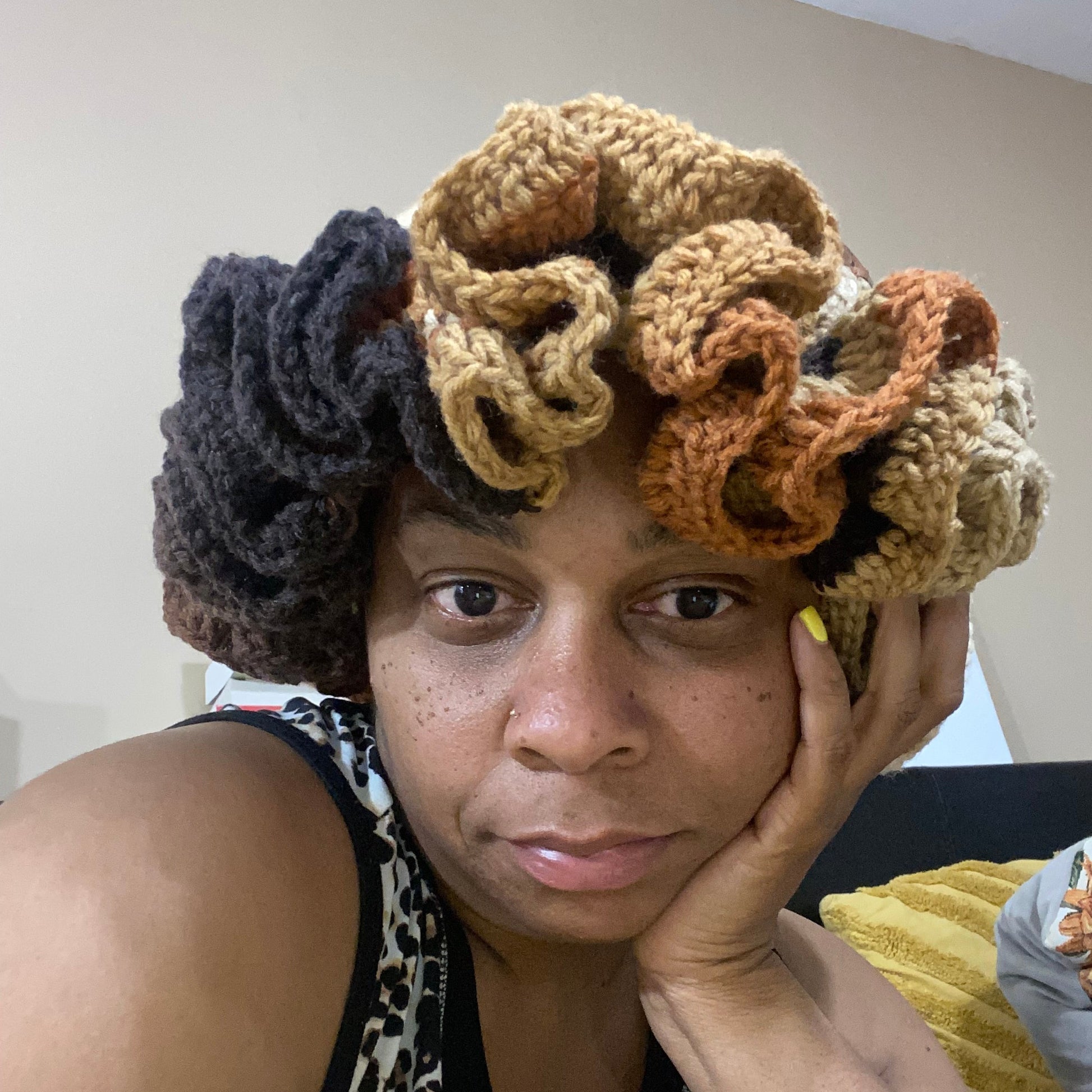 Bucket Hat with deep wave brim. Fits medium - Large head. Turn heads in this stunning one of a kind head wear accessory. Perfect for dressing up or down.